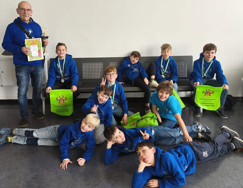 Bei der Landesolympiade im Schulschach waren wir am 10.03. mit zwei Mannschaften in Dresden vertreten. Die erste Mannschaft konnte dabei den Titel: Schulschachmeister Grundschulen Sachsen 2026. Mit 3 Mannschaftspunkten Vorsprung fiel der Sieg auch noch sehr deutlich aus.